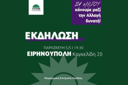 Πρόσκληση της Νομαρχιακής Επιτροπής ΠΑΣΟΚ-Κίνημα Αλλαγής Ημαθίας στην προεκλογική εκδήλωση την Παρασκευή…