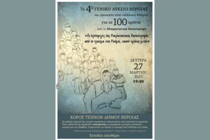 Βέροια: Εκδήλωση Μνήμης για τα 100 χρόνια από τη Μικρασιατική Καταστροφή (27/3/23)