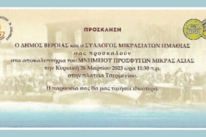 Σύλλογος Μικρασιατών Ημαθίας: Αποκαλυπτήρια Μνημείου “Ελληνικής Προσφυγιάς” (26/3/23)