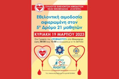 Εθελοντική αιμοδοσία αφιερωμένη στον 5ο Δρόμο 21 Μαθητών (19/3/23)