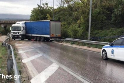 Εκτροπή νταλίκας στην ΕΟ Θεσσαλονίκης – Έδεσσας – Έχασε τον έλεγχο ο οδηγός
