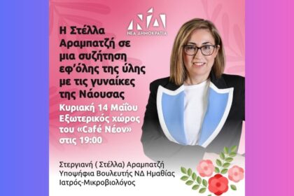 Η Στέλλα Αραμπατζή σε μια συζήτηση εφ’ όλης της ύλης με τις γυναίκες της Νάουσας ΜΕΣΑ στο Cafe ΝΕΟΝ (14/5/23)