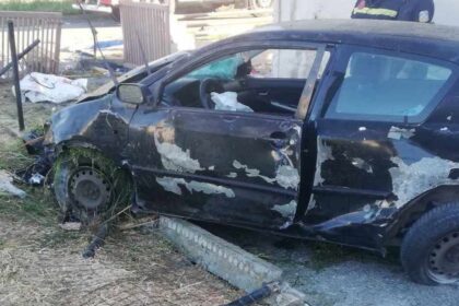 Τροχαίο ατύχημα στο Βρυσάκι – Αυτοκίνητο έριξε κολόνα ηλεκτροφωτισμού, έσπασε περίφραξη και βρέθηκε σε αυλή σπιτιού