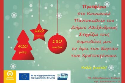 Ενίσχυση του Κοινωνικού Παντοπωλείου του Δήμου Αλεξάνδρειας για την περίοδο των Χριστουγέννων