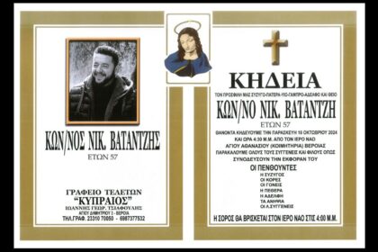 Έφυγε από τη ζωή ο Κωνσταντίνος Βαταντζης