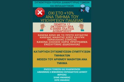 Βέροια: Συγκέντρωση – πορεία διαμαρτυρίας Γονέων και Εκπαιδευτικών (17/10/24)