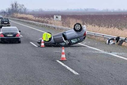 Ημαθία: Τροχαίο με ανατροπή Ι.Χ. στην Εγνατία στο ύψος της Κουλούρας