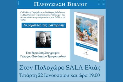 “Το ρομάντζο της Σαντορίνης” – Παρουσιάζεται το βιβλίο του Γιώργου – Ξάνθιππου Τροχόπουλου (22/1/25)