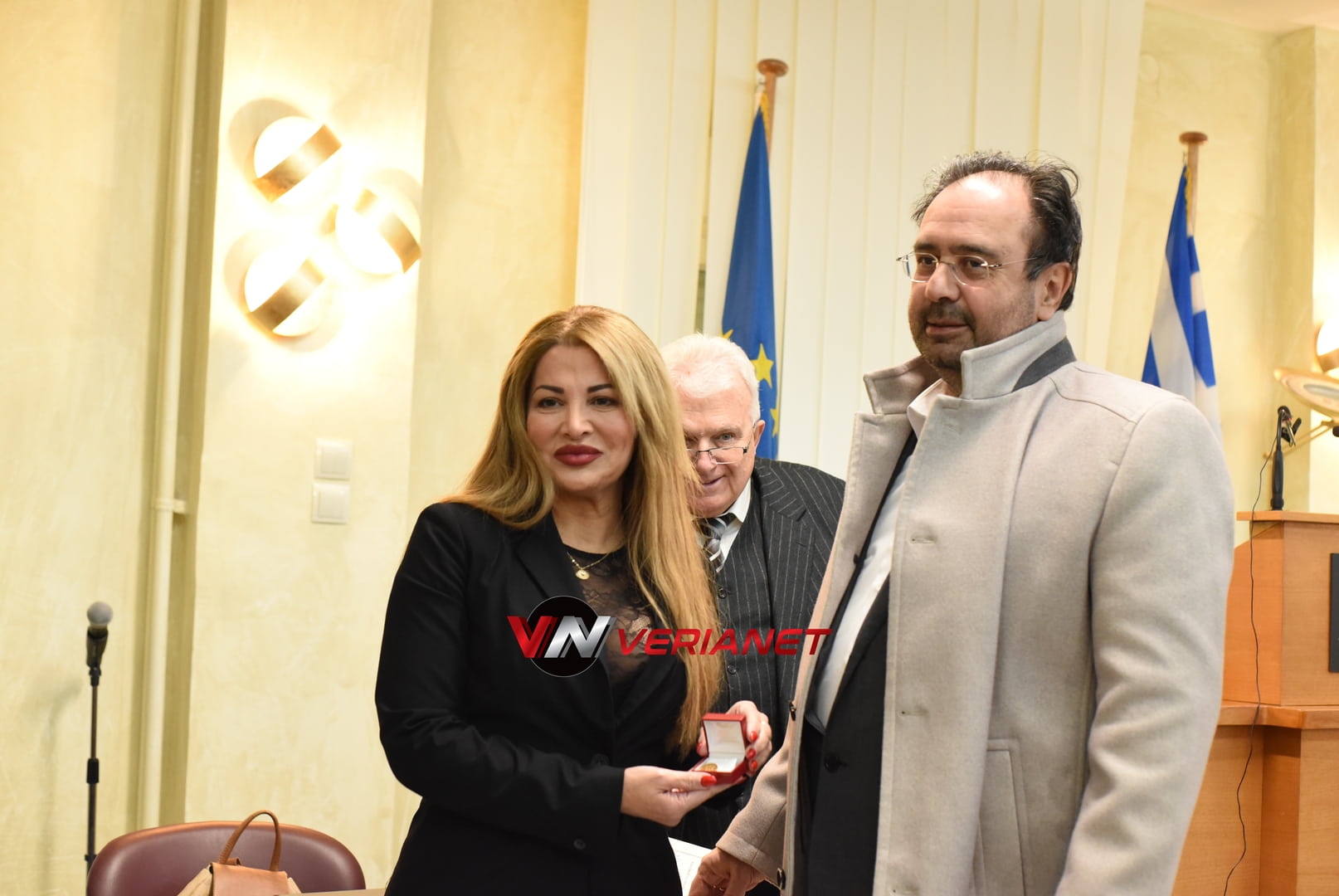 Στη συνέχεια ακολούθησε η απονομή χρυσής λίρας από τον Δήμαρχο Βέροιας, στην Ηλιάνα Καλογήρου, απόφοιτη Λυκείου της Βέροιας που πρώτευσε στη σχολική περίοδο 2022-2023.