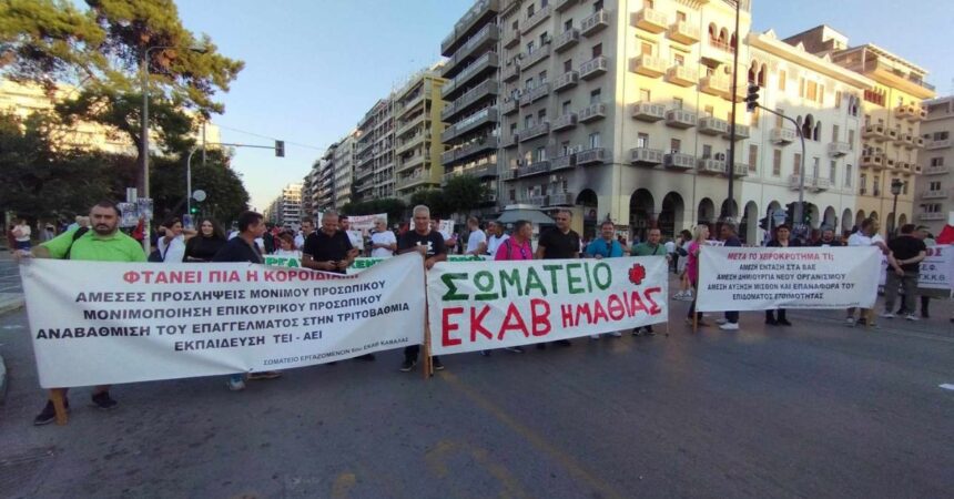 Δυναμική ήταν η συμμετοχή του Σωματείου εργαζομένων στο ΕΚΑΒ Ημαθίας κατά την ειρηνική πορεία διαμαρτυρίας που πραγματοποιήθηκε το Σάββατο στη Θεσσαλονίκη.