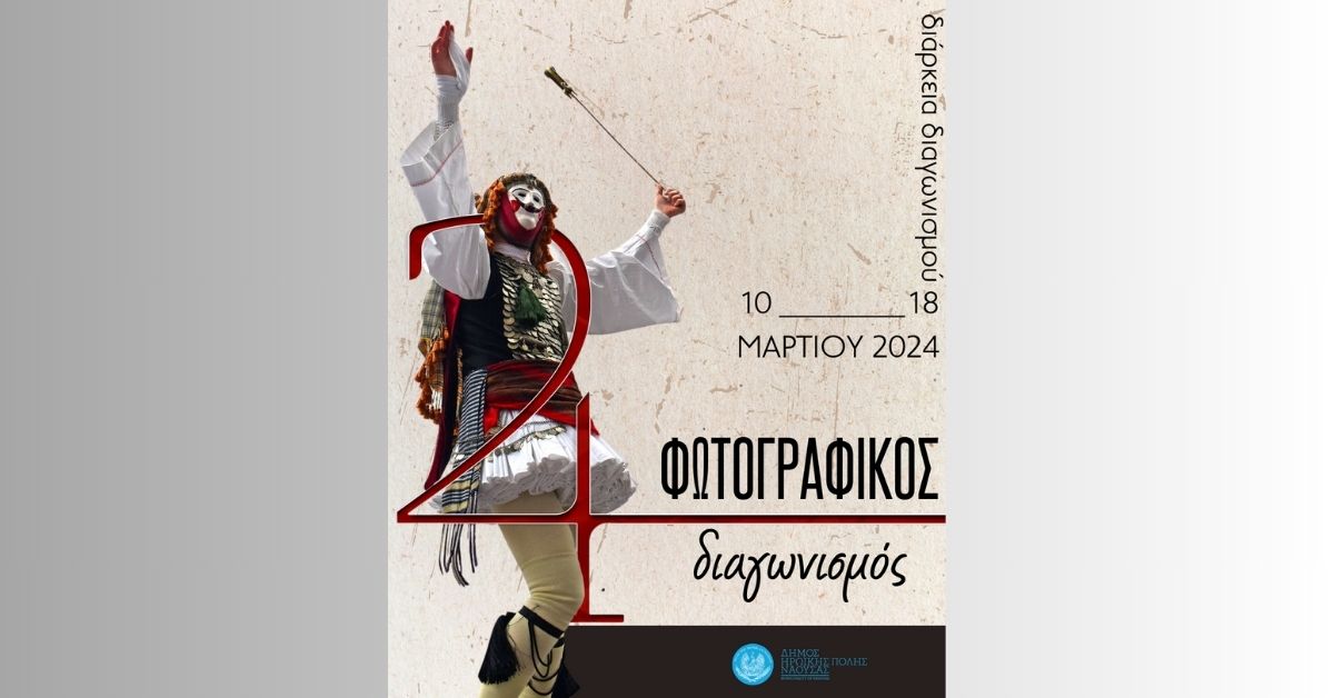 Ο Δήμος Ηρωικής Πόλεως Νάουσας και η Αντιδημαρχία Πολιτισμού, στο πλαίσιο της Αποκριάς 2024 και του Δρώμενου «Γενίτσαροι και Μπούλες» σας προσκαλεί να συμμετέχετε στον Ανοικτό Διαγωνισμό Φωτογραφίας 2024 με τίτλο: «Γενίτσαροι και Μπούλες – Μια πόλη, ένα δρώμενο – Εμπειρία ζωής».