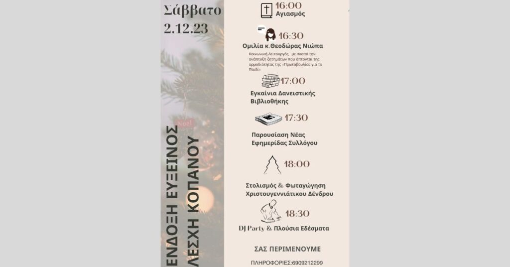 ΑτζένταΔράσεις από την Ένδοξη Εύξεινο Λέσχη Κοπανού το Σάββατο 2/12/23 Sofia Veiou 1 Δεκεμβρίου 2023 Share 0 Min Read SHARE Δράσεις από την Ένδοξη Εύξεινο Λέσχη Κοπανού το Σάββατο 2/12/23 You Might Also Like Λέσχη Αυτοκινήτου Βέροιας: Το 27ο Rally Sprint Φίλιππος το Σαββατοκύριακο 17-18 Μαΐου Το πρόγραμμα της 203ης Επετείου του Ολοκαυτώματος της Νάουσας Νάουσα: Ο “21ος Δρόμος Θυσίας” την Κυριακή 4 Μαΐου Εύξεινος Λέσχη Βέροιας: Πρώτη επίσημη παρουσίαση της ιστοσελίδας «Lingua Pontica – Digital Terra» (12/4/25) Lemon στη Βέροια: Με αυξημένο ενδιαφέρον συνεχίζεται η προπώληση! Share This Article Facebook Twitter Email Print Previous Article Αναβλήθηκε η εκδίκαση της ένστασης της Δώρας Κουρκουτά Next Article Ο Βασίλης Βασιλικός στη Βέροια το …1997!!! (βίντεο αρχείου) Leave a reviewLeave a review Ακύρωση απάντησηςΗ ηλ. διεύθυνση σας δεν δημοσιεύεται. Τα υποχρεωτικά πεδία σημειώνονται με * Please select a rating! Your Rating Rate…PerfectGoodAverageNot that BadVery Poor Your comment *Your name *Your Email *Your website Αποθήκευσε το όνομά μου, email, και τον ιστότοπο μου σε αυτόν τον πλοηγό για την επόμενη φορά που θα σχολιάσω.