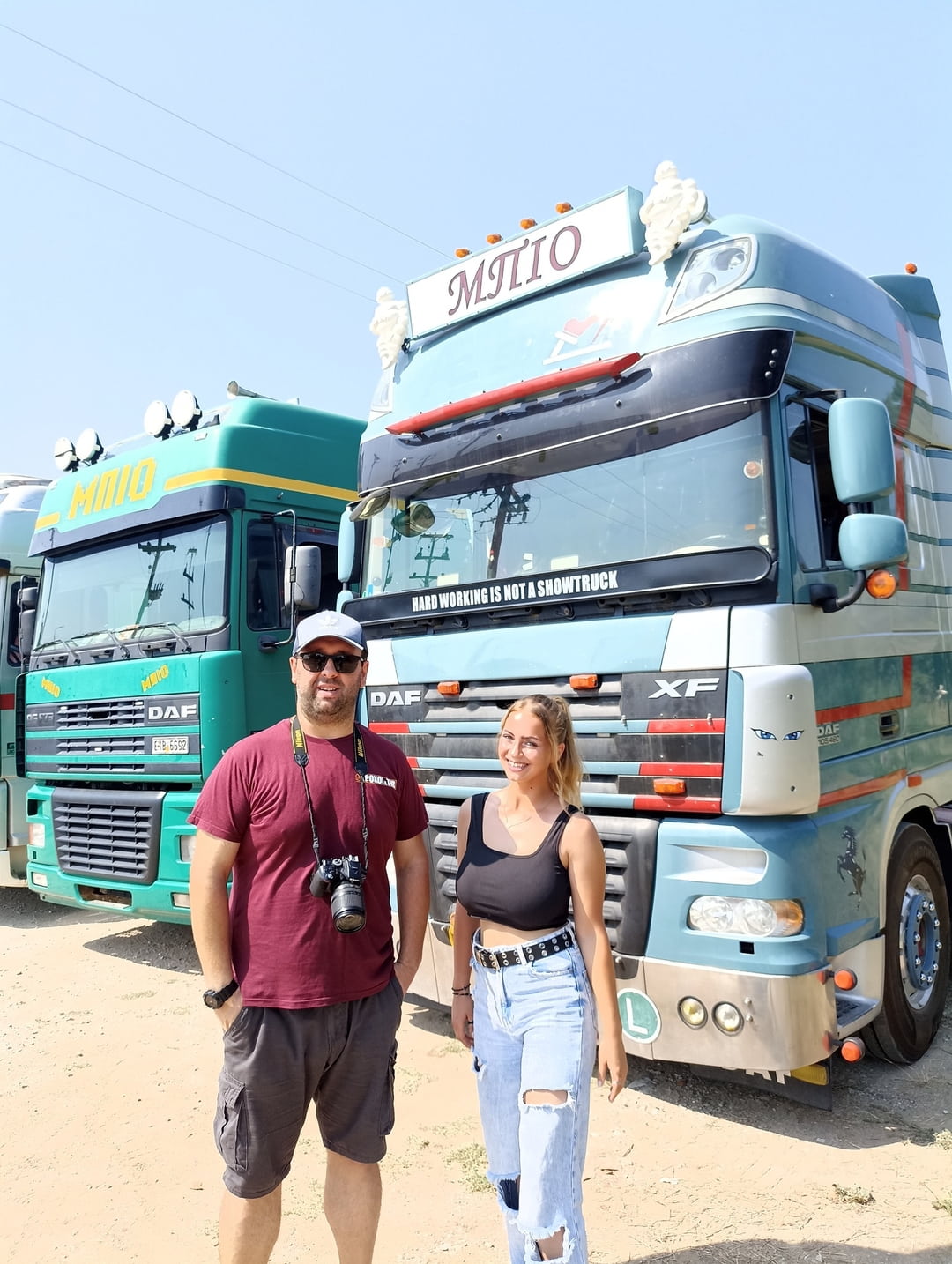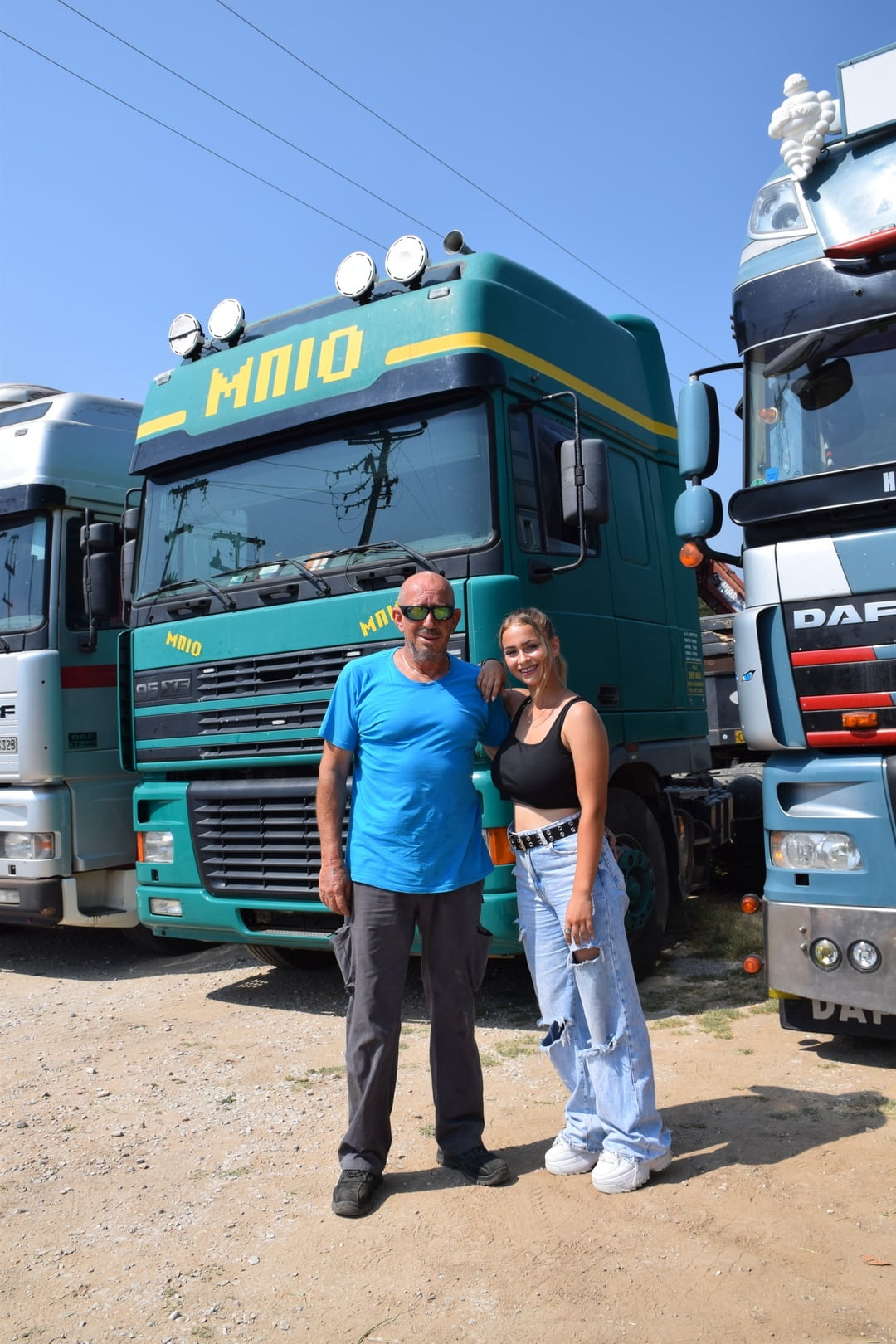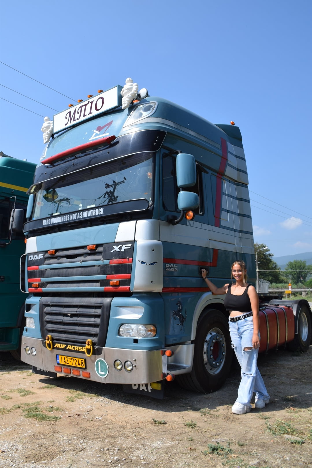 “Η Μαρία Μπινιόλα από τη Βέροια με υποδέχεται στην καμπίνα του XF και το ταξίδι μας ξεκινάει.”, σημειώνει ο αρθρογράφος του ΤΡΟΧΟΙ & TIR.