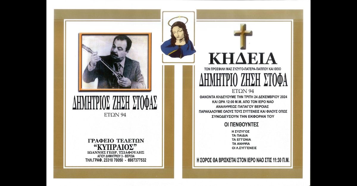 Έφυγε από τη ζωή σε ηλικία 94 ετών ένας από τους τελευταίους της «παλιάς φρουράς». Ο Δημήτρης Στόφας.