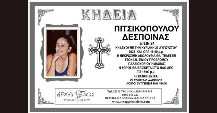 Σε ηλικία 24 ετών, άφησε την τελευταία της πνοή η Δέσποινα Πιτσικοπούλου.