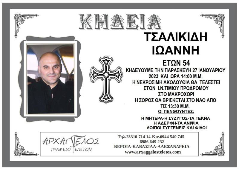 Έφυγε από τη ζωή σε ηλικία 54 ετών ο Γιάννης Τσαλικίδης, κάτοικος εν ζωή Μακροχωρίου Ημαθίας.