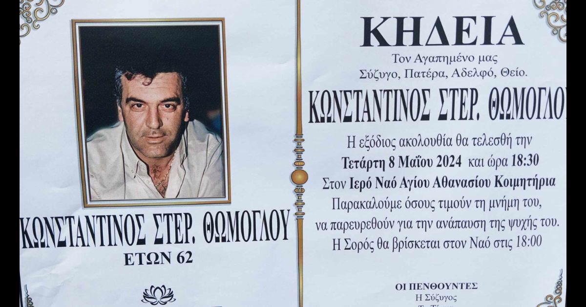 Σε ηλικία 62 ετών άφησε την τελευταία του πνοή ο Κωνσταντίνος Θώμογλου.