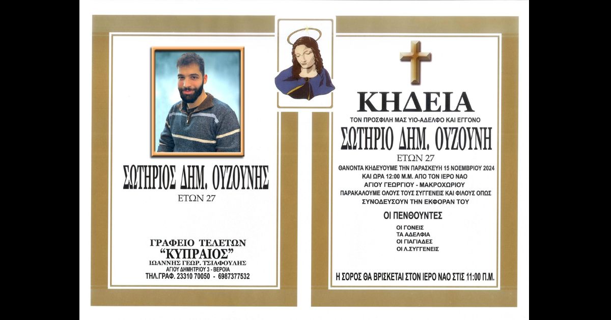 Ο αποχαιρετισμός του Σωτήρη Ουζούνη θα γίνει στον τόπο του, στο Μακροχώρι.