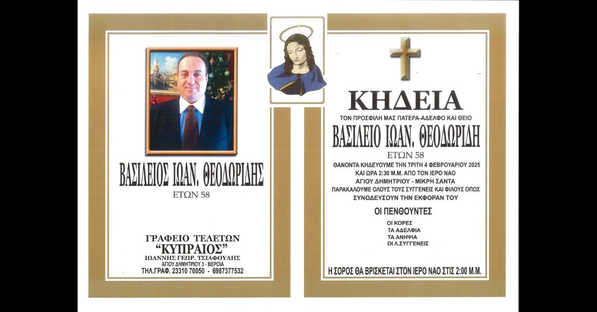 Σε ηλικία 58 ετών άφησε την τελευταία του πνοή ο Βασίλης Θεοδωρίδης.
