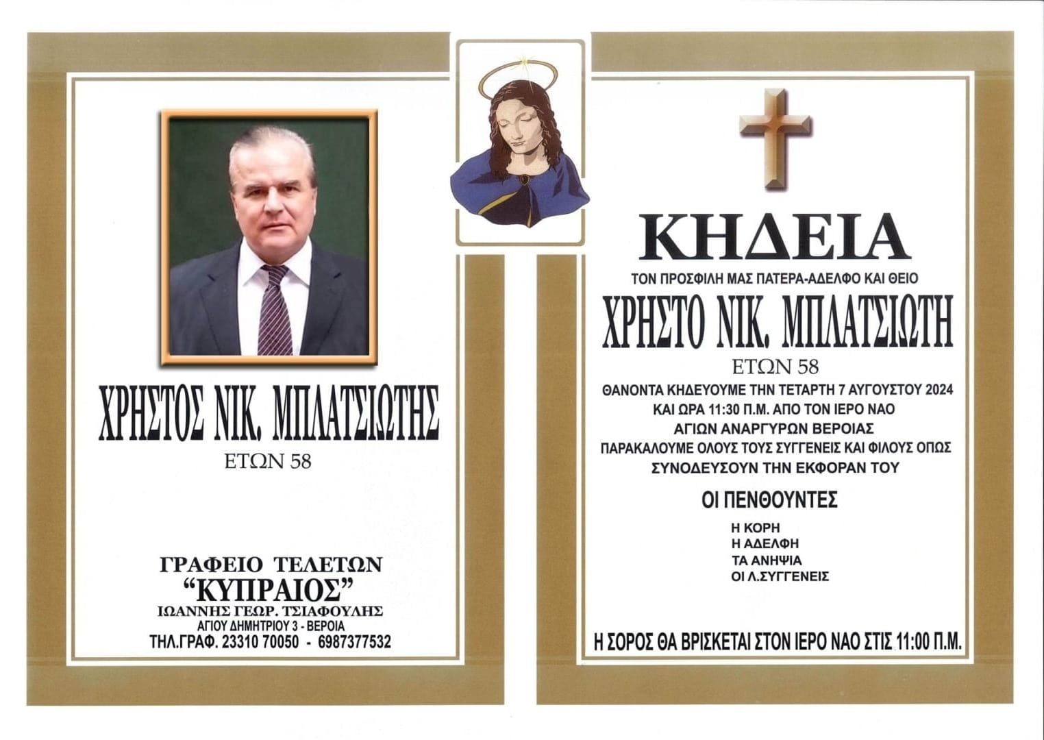 Την τελευταία του πνοή σε ηλικία 58 ετών άφησε ο επί πολλά χρόνια συνεργάτης του αείμνηστου Δημήτρη Γκίμα στο τμήμα μπάσκετ του Φιλίππου Βέροιας, Χρήστος Μπλατσιώτης.