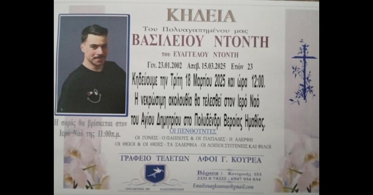 Σε ηλικία 23 ετών άφησε την τελευταία του πνοή ο Βασίλης Ντόντης.