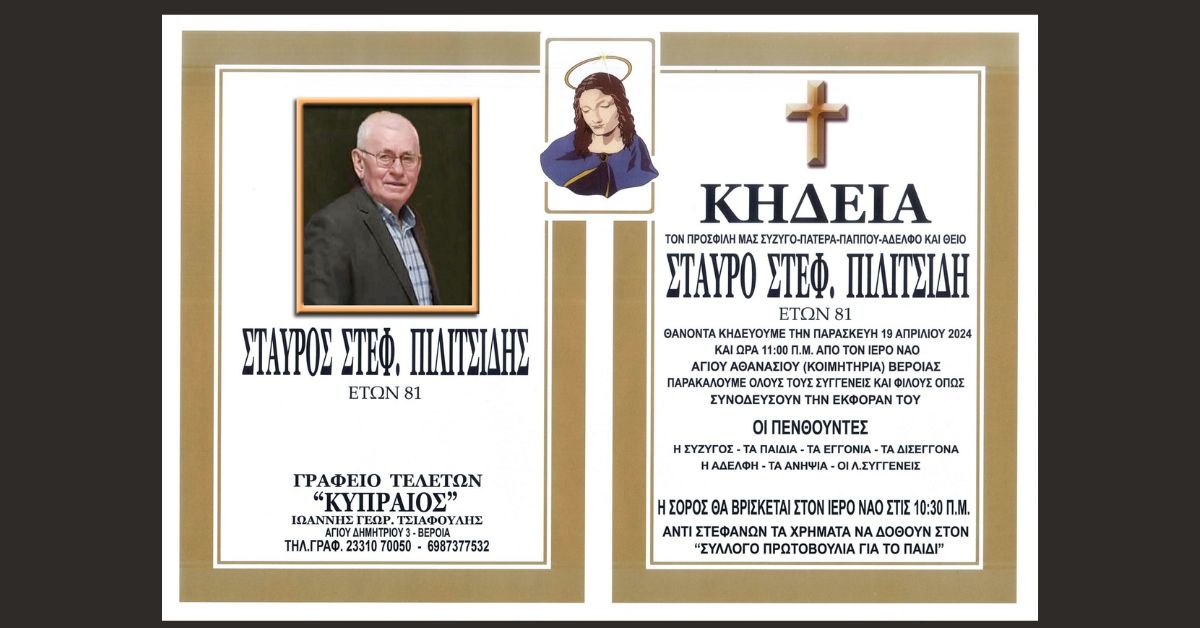 Σε ηλικία 81 ετών άφησε την τελευταία του πνοή ο Σταύρος Πιλιτσίδης.