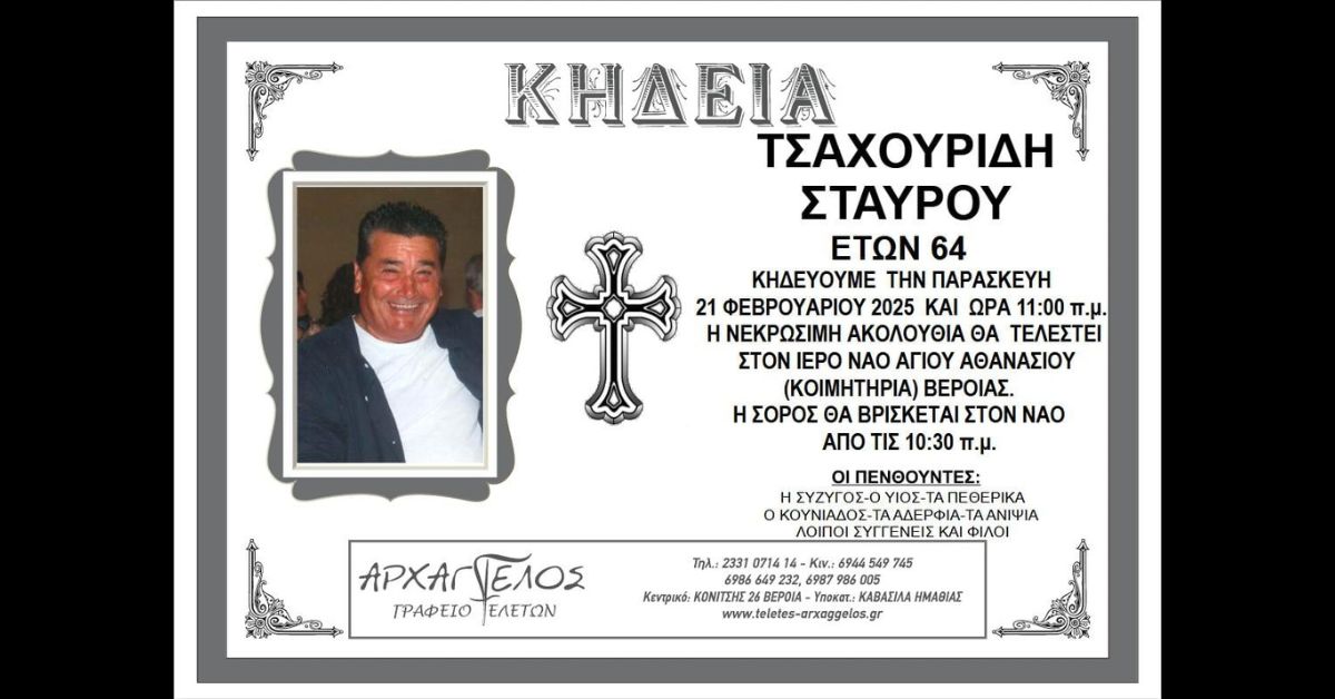 Σε ηλικία 64 ετών άφησε την τελευταία του πνοή ο Σταύρος Τσαχουρίδης.