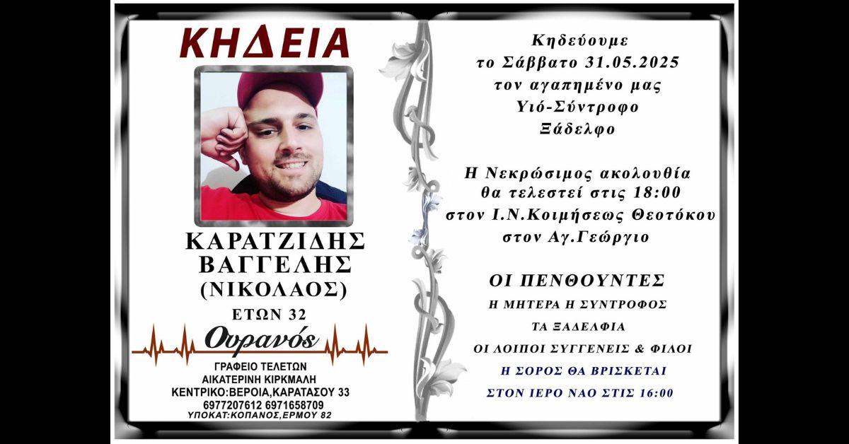 Σε ηλικία 32 ετών άφησε την τελευταία του πνοή ο Βαγγέλης Καρατζίδης.