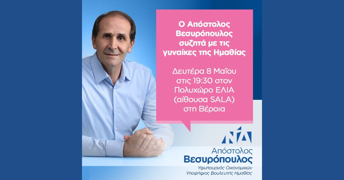 Verianet > News > Ημαθία > Βέροια > Ο Απόστολος Βεσυρόπουλος συζητά με τις γυναίκες της Ημαθίας (8/5/23)