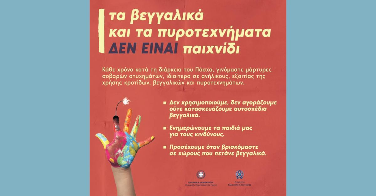 ΕΛ.ΑΣ: «Τα βεγγαλικά και τα πυροτεχνήματα δεν είναι παιχνίδι»