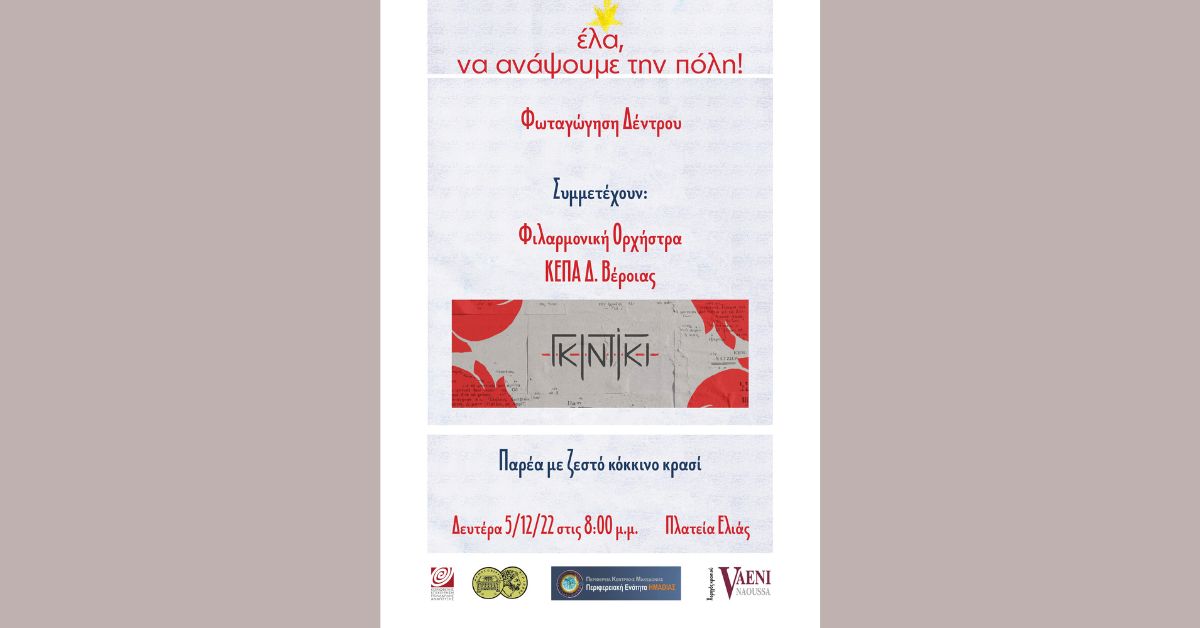Συνοδεύει η Φιλαρμονική Ορχήστρα της ΚΕΠΑ Δήμου Βέροιας, υπό τη δ/νση του Βαλάντη Κυριακίδη.