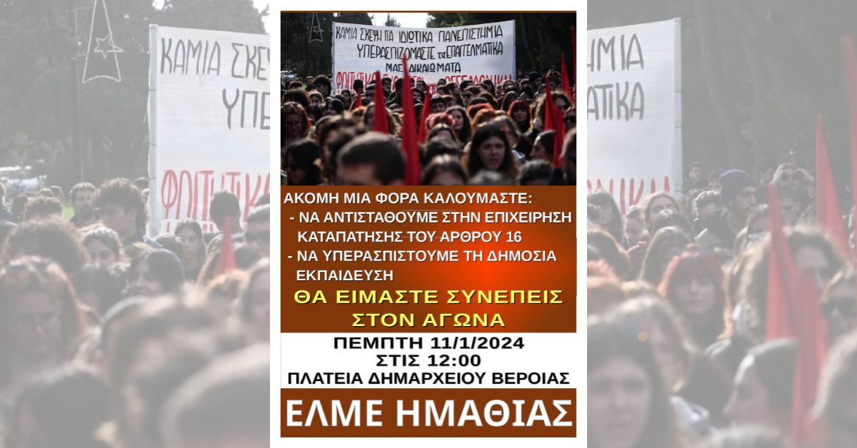 ΕΛΜΕ Ημαθίας: Όχι στα Ιδιωτικά Πανεπιστήμια