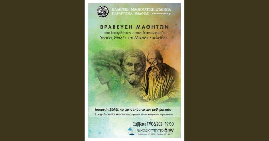 Το Παράρτημα Ημαθίας της Ελληνικής Μαθηματικής Εταιρείας βραβεύει τους μαθητές που διακρίθηκαν στους διαγωνισμούς: Υπατία, Θαλής και Μικρός Ευκλείδης κατά το σχολικό έτος 2022-2023.