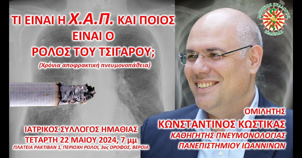 Ενημερωτική συνάντηση του Ιατρικού Συλλόγου Ημαθίας με θέμα τη Χρόνια Αποφρακτική Πνευμονοπάθεια (22/5/24)