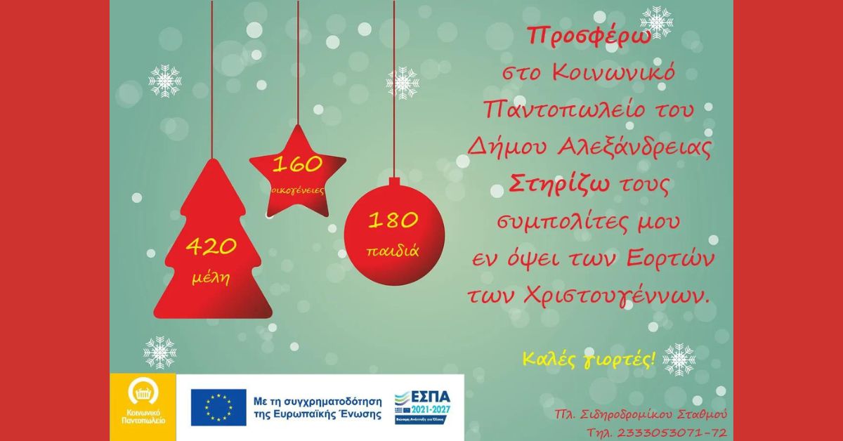 Ενίσχυση του Κοινωνικού Παντοπωλείου του Δήμου Αλεξάνδρειας για την περίοδο των Χριστουγέννων