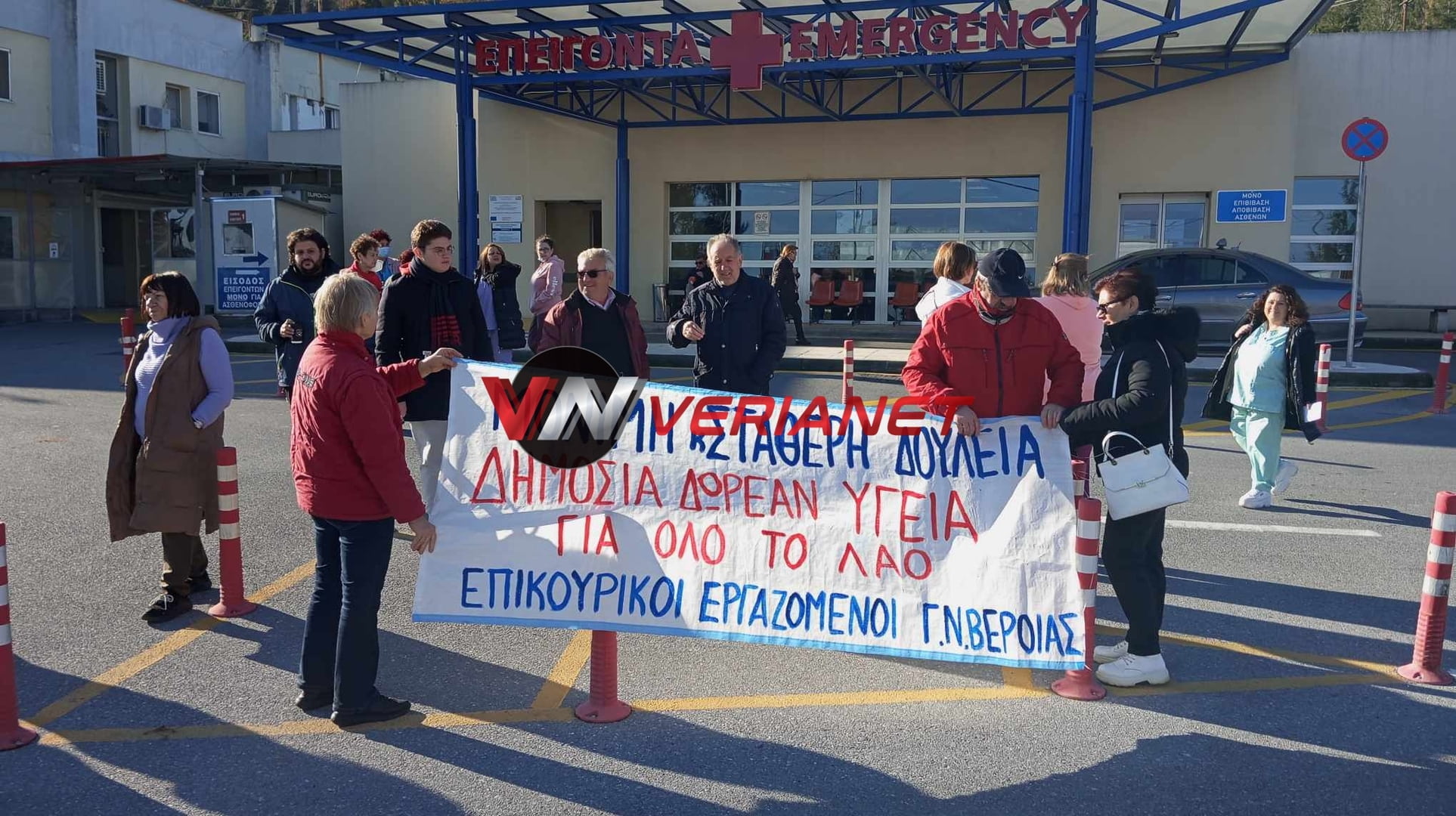 Συγκέντρωση έξω από το Νοσοκομείο Βέροιας πραγματοποιήθηκε το πρωί της Παρασκευής 8/12/2023 έπειτα από κάλεσμα του Εργατικού Κέντρου Ημαθίας «Γιώργος Βουτυράς».