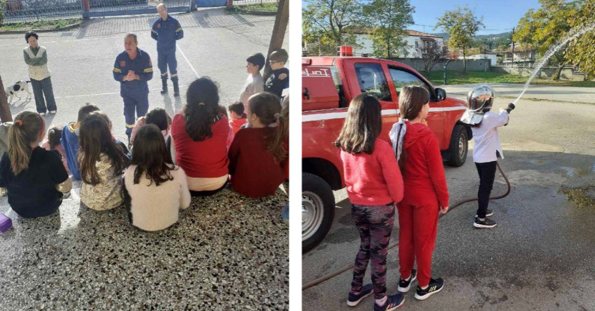 Οι πυροσβέστες έκαναν μια εξαιρετική παρουσίαση και συζήτησαν με τους μαθητές για την απόκτηση καλών πρακτικών σε καταστάσεις κινδύνου σε περίπτωση πυρκαγιάς, πλημμύρας ή σεισμού και έλυσαν όλες τις απορίες τους. Παιδιά και εκπαιδευτικοί παρακολούθησαν με πολύ ενδιαφέρον την ενημέρωση. Αφού οι μαθητές και οι μαθήτριες κατανόησαν τα μέτρα πυροπροστασίας, έκαναν πρακτική εξάσκηση στον προαύλιο χώρο.