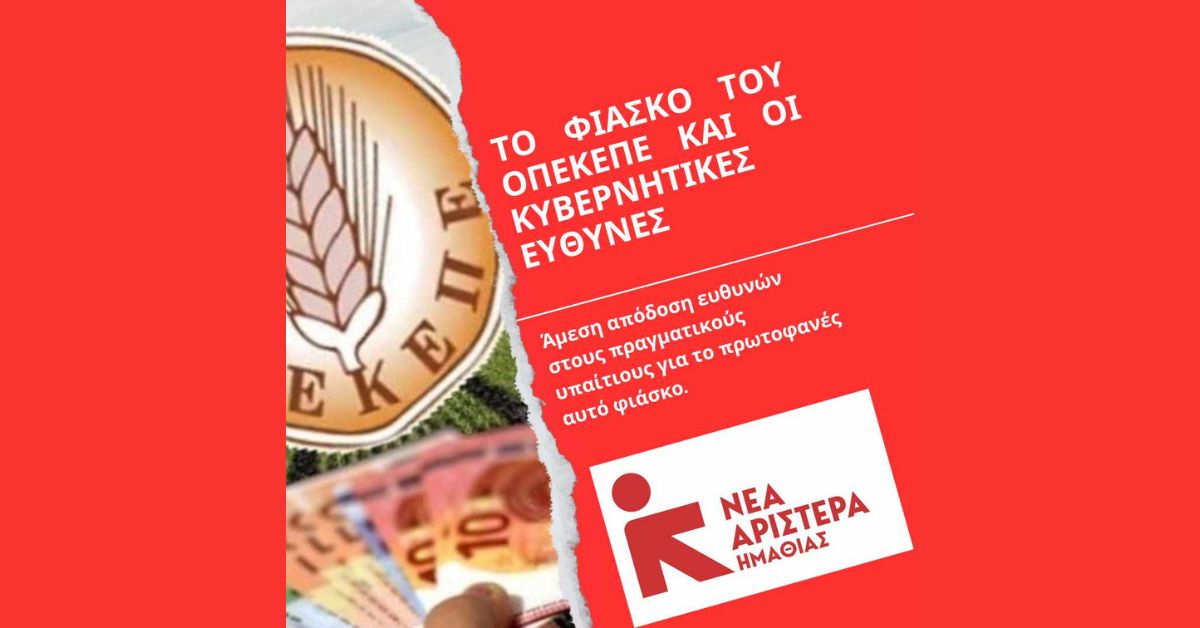 Είναι προφανές ότι το ζήτημα δεν περιορίζεται απλώς σε ένα τεχνικό σφάλμα, αλλά αντικατοπτρίζει τη συνολική αποτυχία του ΟΠΕΚΕΠΕ στα 5 χρόνια διακυβέρνησης της ΝΔ να λειτουργήσει με διαφάνεια και συνέπεια, αδιάψευστο τεκμήριο της κυβερνητικής αδράνειας και ανικανότητας να επιλύσει τα βαθιά προβλήματα του αγροτικού τομέα, και της κατάρρευσης του «επιτελικού κράτους».