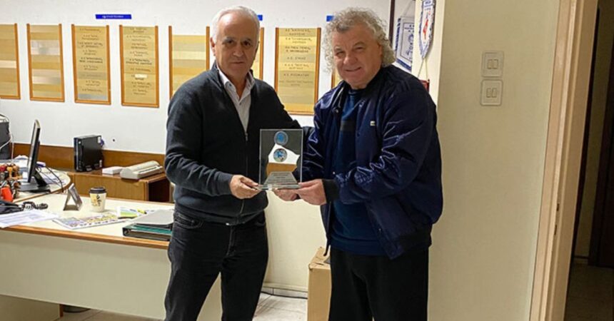 Ο κ. ΧΑΤΖΗΠΑΝΑΓΗΣ βραβεύτηκε για την προσφορά του στο ελληνικό ποδόσφαιρο από τον Πρόεδρο της Ένωσης κ. ΜΟΥΡΤΖΙΛΑ ΣΤΕΡΓΙΟ, με τον οποίο προχώρησε σε ανταλλαγή απόψεων για ζητήματα της τρέχουσας επικαιρότητας του ποδοσφαίρου.