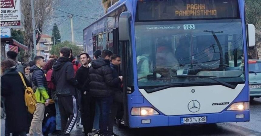 Πάει στη στάση και βγάζει εισιτήριο, και βάζει τα ρέστα στην τσέπη. Το λεωφορείο για το ΤΕΙ έρχεται και επιβιβάζεται.