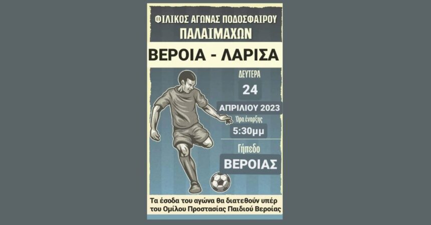 Φιλικός αγώνας με τη συμμετοχή πολλών μεγάλων ονομάτων του ποδοσφαίρου του παρελθόντος θα πραγματοποιηθεί τη Δευτέρα στις 24/4/23 στο Δημοτικό Στάδιο Βέροιας (5.30 μ.μ).