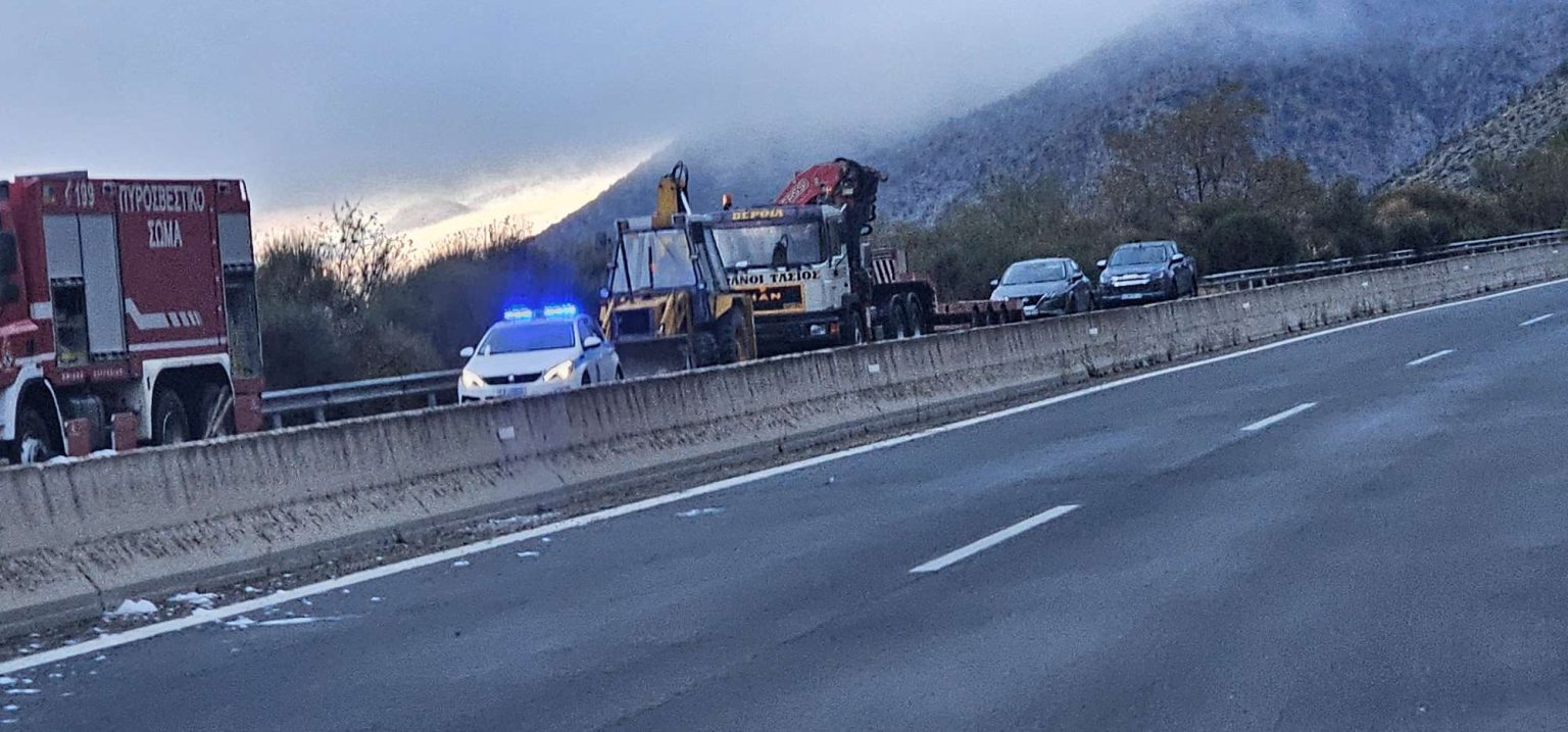 Η φωτιά εκδηλώθηκε τις πρώτες πρωινές ώρες περίπου 3 χλμ πριν τα διόδια Πολυμύλου, στο ύψος του χωριού Λεβέντη.