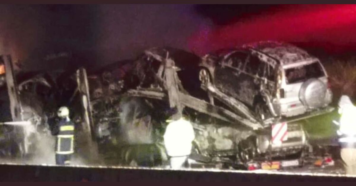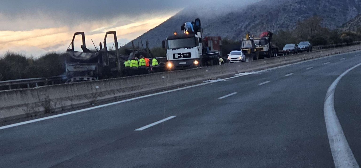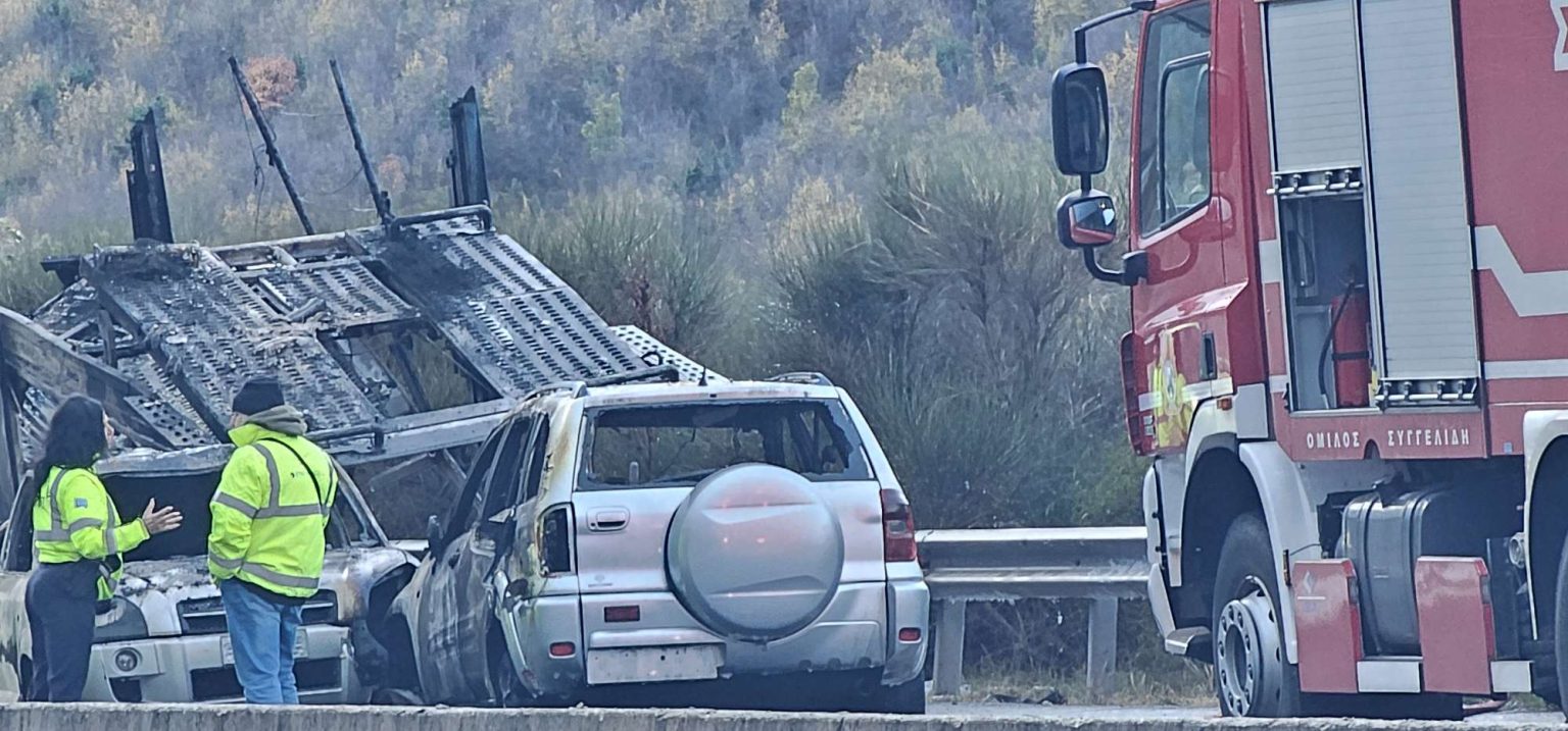 Φωτιά εκδηλώθηκε περί τις 03:30, τα ξημερώματα του Σαββάτου, σε φορτηγό που μετέφερε αυτοκίνητα.