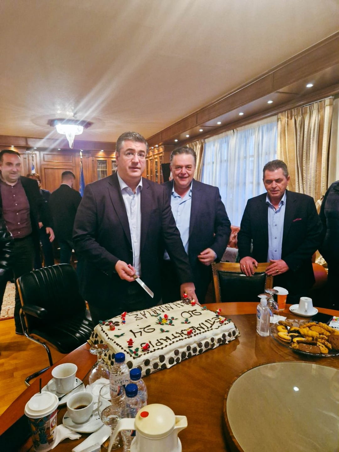Παρουσία του Περιφερειάρχη Κεντρικής Μακεδονίας κ. Απόστολου Τζιτζικώστα και του αντιπεριφερειάρχη Ημαθίας κ.Κωνσταντίνου Καλαϊτζίδη, πραγματοποιήθηκε το απόγευμα της Τρίτης 27 Φεβρουαρίου η καθιερωμένη κοπή της βασιλόπιτας του Επιμελητηρίου Ημαθίας.
