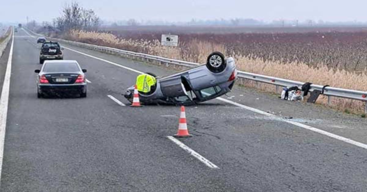 Ημαθία: Τροχαίο με ανατροπή Ι.Χ. στην Εγνατία στο ύψος της Κουλούρας