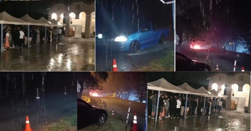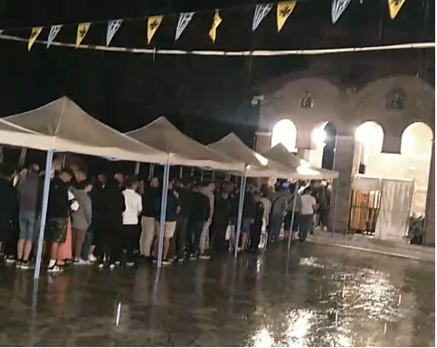 Παρά τις δυσμενείς καιρικές συνθήκες, όπως φαίνεται και στις φωτογραφίες, ο κόσμος περιμένει κάτω από ειδικά τοποθετούμενες τέντες για να προσκυνήσει το Θαυματουργό Ιερό Εικόνισμα της Κυράς του Πόντου, της Προσφυγομάνας Παναγιάς, της Παναγίας της Σουμελιώτισσας.