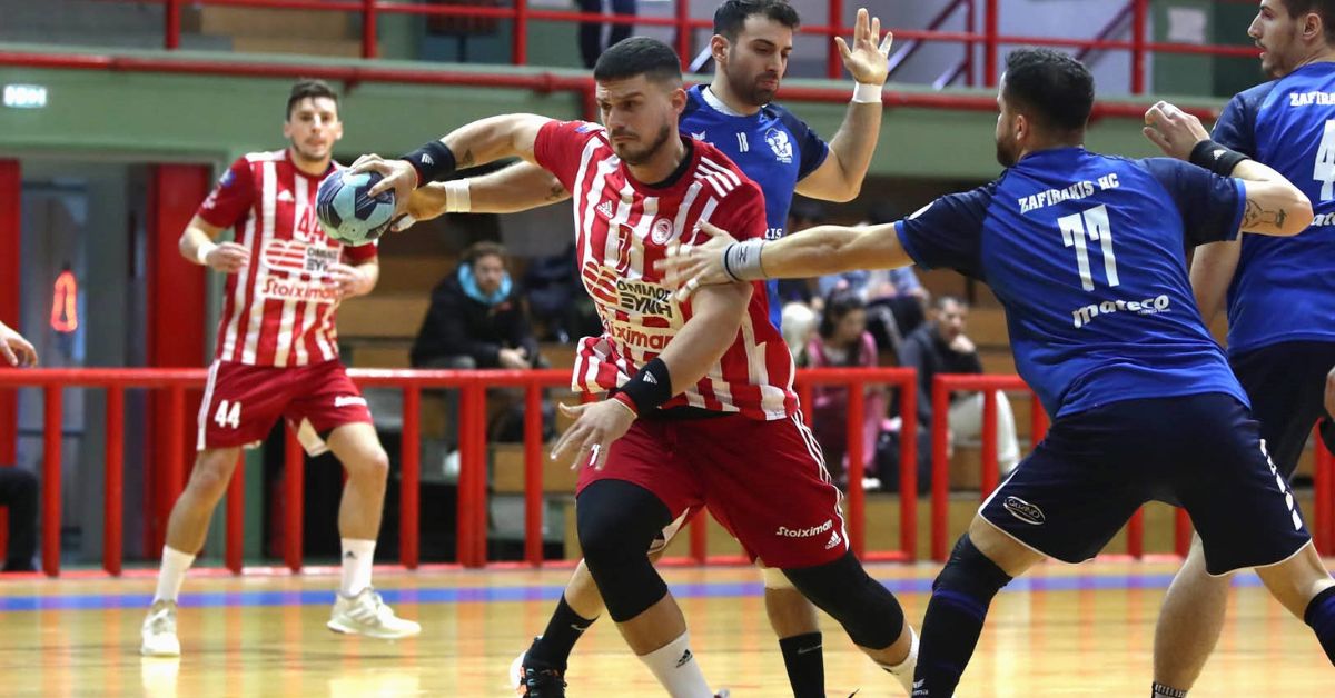 Από την, περσινή πρωταθλήτρια Ελλάδος, ομάδα του Ολυμπιακού, ηττήθηκε ο Ζαφειράκης Νάουσας, στο κλείσιμο του πρώτου γύρου του πρωταθλήματος της Handball Premier με σκορ 32-22.
