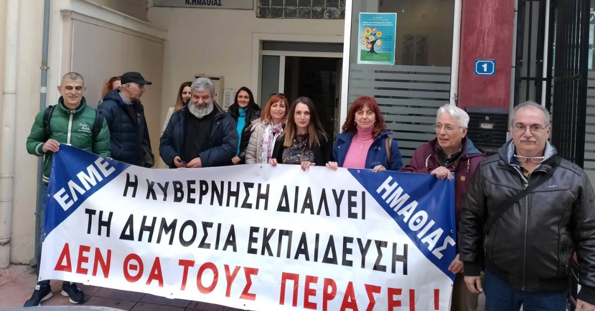 Πραγματοποιήθηκε σήμερα Παρασκευή 13/1/23, παράσταση Διαμαρτυρίας της ΕΛΜΕ Ημαθίας στην Δ/νση Δευτεροβάθμιας Εκπαίδευσης, με αίτημα την άμεση μονιμοποίηση των εδώ και δυο χρόνια νεοδιορισμένων εκπαιδευτικών.