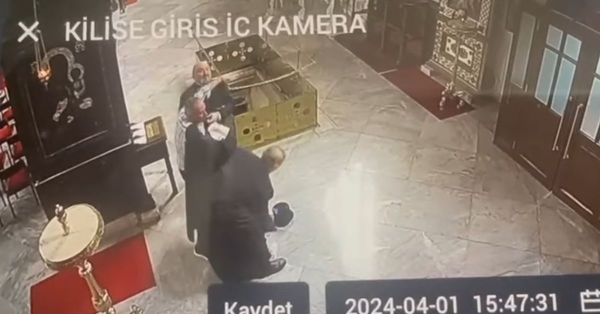 Το απίστευτο περιστατικό όπως το απαθανάτισαν οι κάμερες ασφαλείας του Ιερού Ναού του Οικουμενικού Πατριαρχείου.