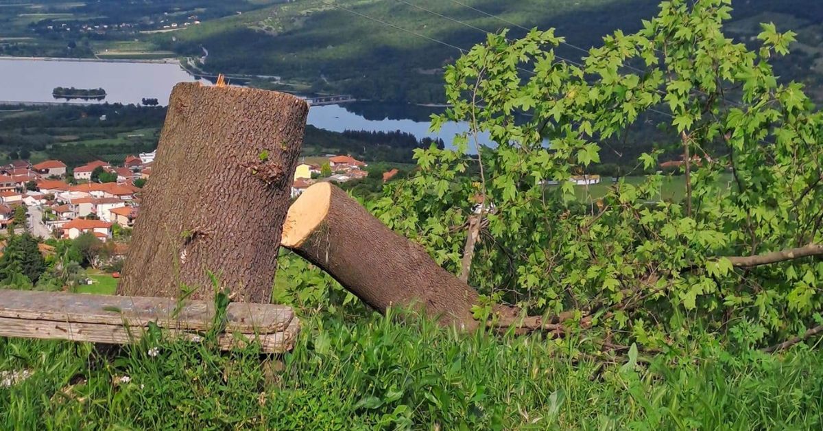 Κομμένο και γκρεμισμένο στην πλαγιά το πλατάνι που πρόσφερε δροσιά στον περαστικό και τον περιπατητή… Με ένα αυτοσχέδιο παγκάκι από κάτω…